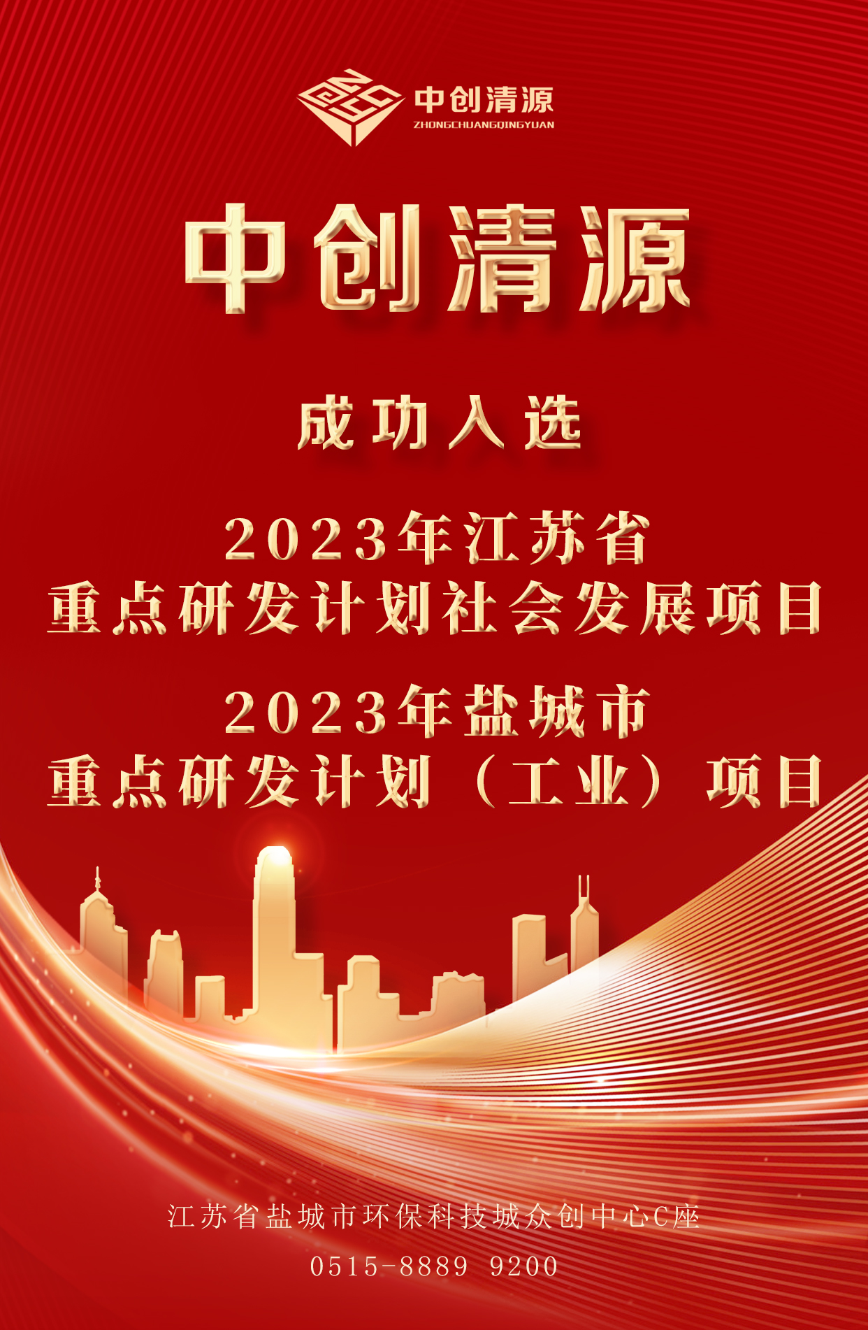 近日,江苏中创清源科技有限公司连续受到江苏省科学技术厅、盐城市科学技术局认可支持,成功入选2023年省科技计划专项资金(重点研发计划社会发展)项目、2023年盐城市重点研发计划(工业)项目。